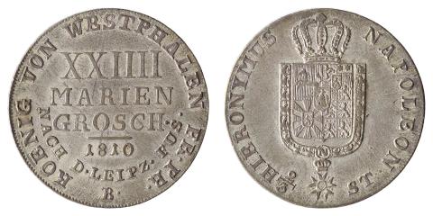 Alemanha, Westphalia, Jerome (Hyeronimus) Napoleon (1807-1813). 24 Mariengroschen, 1810B. Brunswick. Prata. 17,27g; 29mm. KM# 110. FC. Maravilhosa, com todo o lustre original e muito rara nesse estado