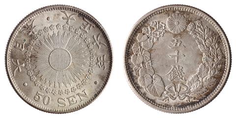 Japão, 50 Sen, Taisho (1912-1926). Ano 6 (1917). KM# Y# 37, JNDA# 01-15. Sob/FC e com muito lustre original