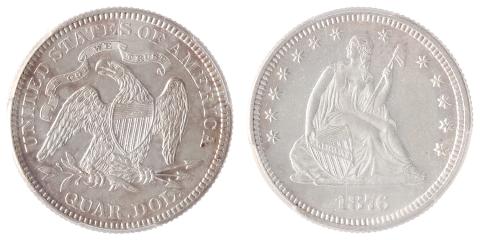 Estados Unidos, 25c (quarter Dollar), 1876. Prata. KM# A98. PCGS AU58. Superfícies reflexivas, reverso quase espelho (mirror like), excepcional para o grau