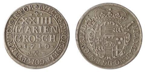Alemanha, Munster (Diocese), 2/3 Taler (XXIIII Mariengroschen), 1710JW. Prata. KM# 134. MBC/Sob. Escassa, e muito atrativa